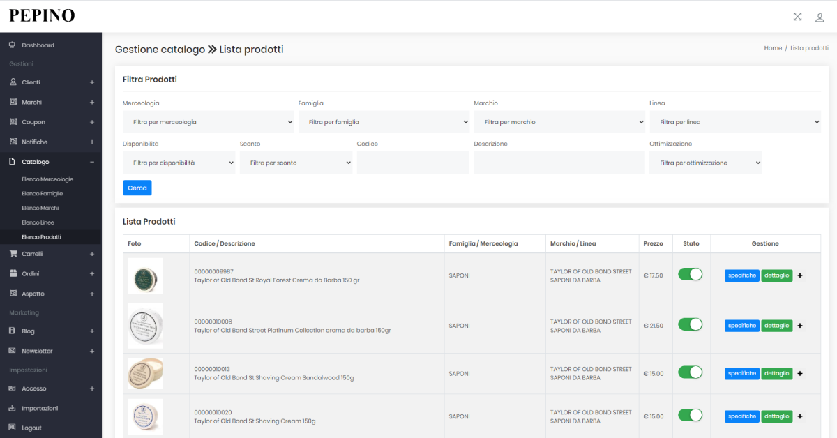La piattaforma web è stata realizzata partendo dal framework ecommerce nostro proprietario, personalizzato in maniera molto spinta. Abbiamo azzerato i problemi pre-esistenti sulla piattaforma vecchia esistente costruita in Prestashop.